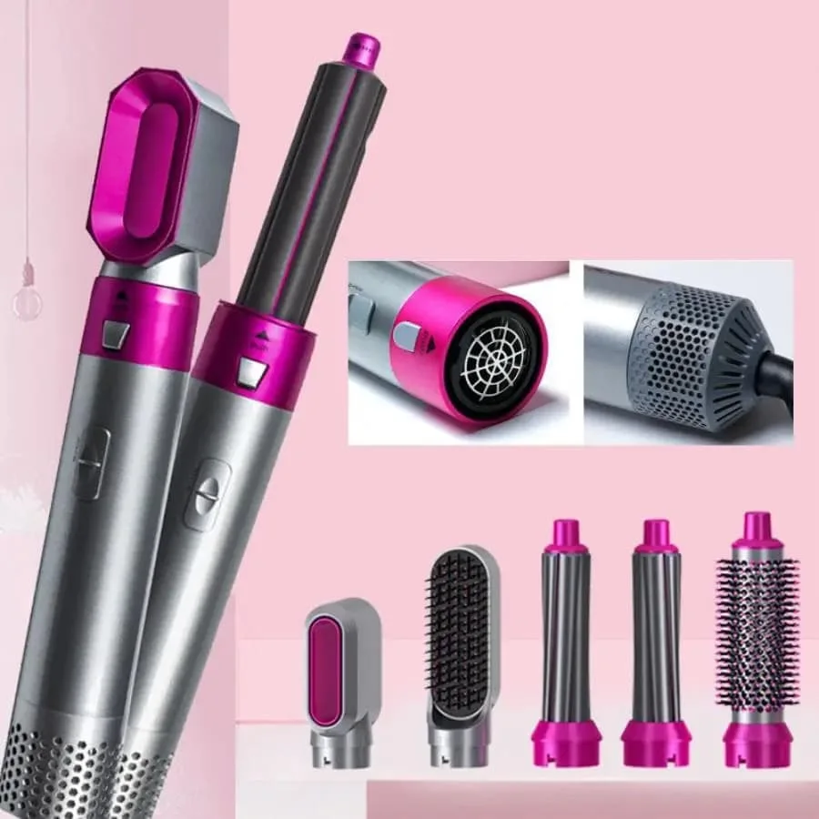 يأتي مجفف ومصفف الشعر للنساء مزودًا بخمسة ملحقات فرشاة قابلة للتبديل تجعل عملية فرد الشعر وتجعيده وتكثيفه وتدليك فروة الرأس أمرًا سهلاً. الجمع بين تجفيف الشعر وفرش التصفيف ، يمكن أن يتناسب مع أطوال مختلفة للشعر ويخلق أنماطًا مختلفة.