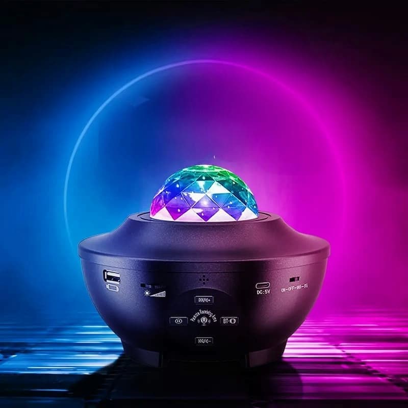 جهاز عرض ضوء الليل بتقنية LED يحتوي على مكبر صوت مدمج حتى تتمكن من توصيل هاتفك عبر البلوتوث أو توصيل فلاشة USB لتشغيل أغانيك المفضلة.