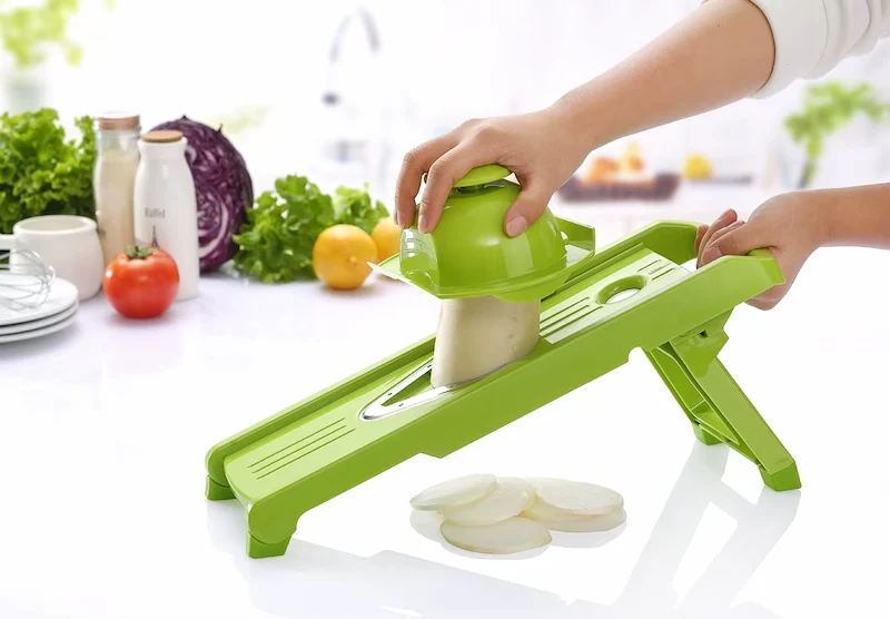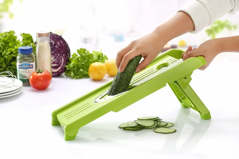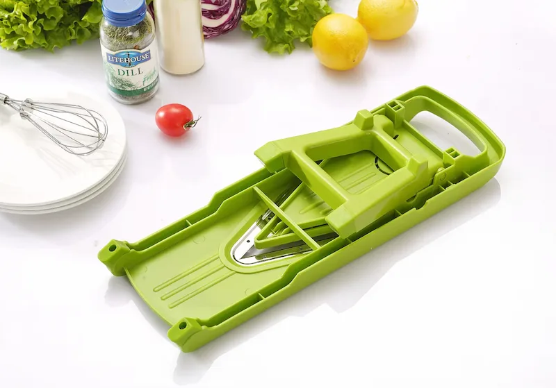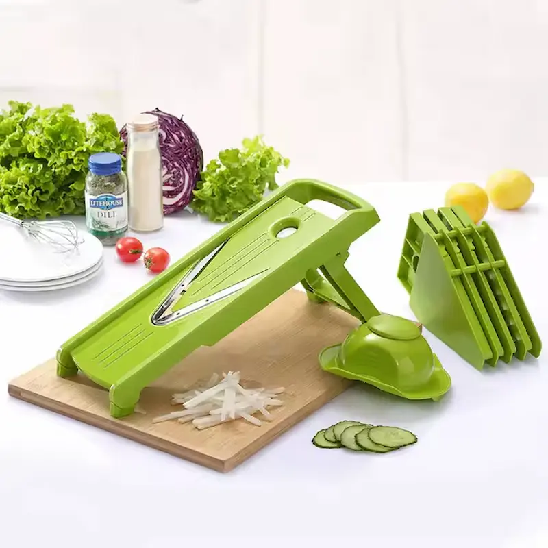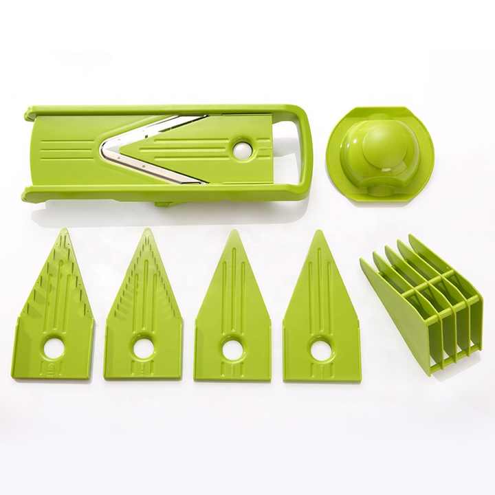 مجموعة قطاعة الماندولين على شكل حرف V: قطاعة خضروات وفواكه 5 في 1 للمطبخ مع شفرة من الفولاذ المقاوم للصدأ