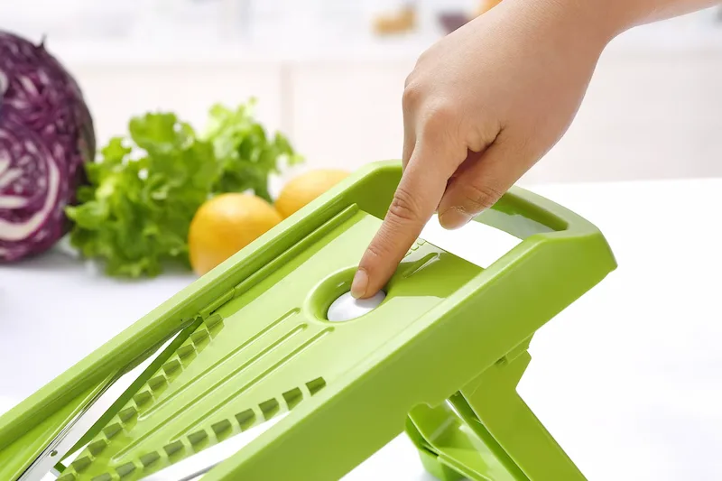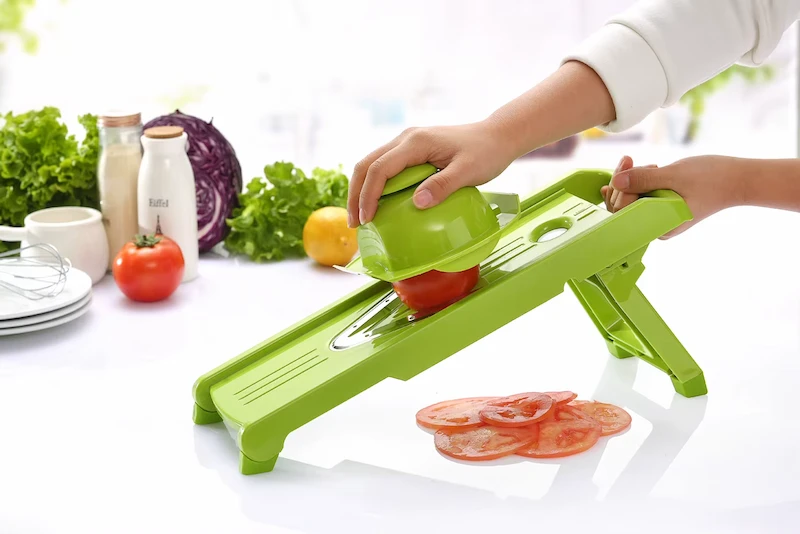 سهلة التنظيف وآمنة - توفر قاطعة الخضروات حماية فعالة لمنع إصابات الأصابع العرضية وتضمن المواد المصنوعة من الفولاذ المقاوم للصدأ والبلاستيك عمر خدمة طويل وتحقق كفاءة عالية في عملية التنظيف. اشطف بقايا الطعام بالماء الجاري، ثم جففها بشكل طبيعي. بعد طي أقدام الدعم، لا تحتاج إلى شغل مساحة كبيرة. أدوات المطبخ التي لا تستغرق وقتًا طويلاً في التنظيف تعتبر أدوات مساعدة جيدة في المطبخ.