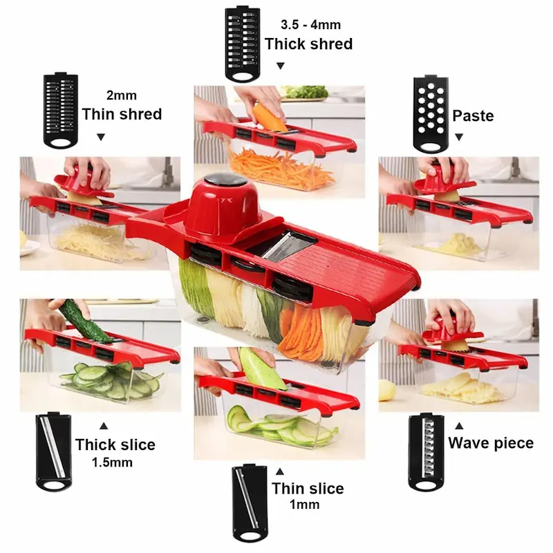 • 5* شفرات (قطاعة رفيعة ، قطاعة سميكة ، قطاعة مسطحة ، قطاعة مموجة ، مبشرة طحن)
