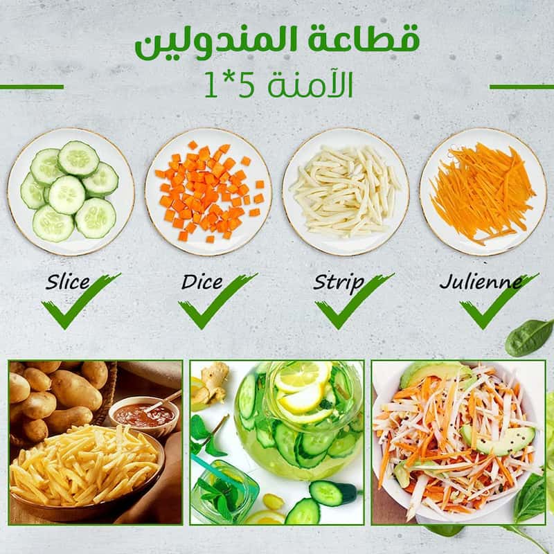 • شفرات حادة على الخضراوات والفواكه و آمنة على يدك.